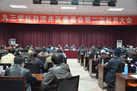 1月9日,九三学社自流井区委员会第二次社员大会在自流井区政府101会议室召开。自贡市人大常委会副主任、九三学社自贡市委主委罗毅平,自流井区政协主席刘茂常,中共自流井区区委副书记黄志勇,九三学社自贡市委专职副主委杨俊村,自流井区人大常委会副主任许力,自流井区政协副主席、区委统战部长邓平,自流井区政协副主席张平,九三市委秘书长肖堃及自流井区民革、民盟、民建、农工党、工商联负责人,我社各兄弟基层组织负责人等应邀出席会议。79名九三社员参加大会。