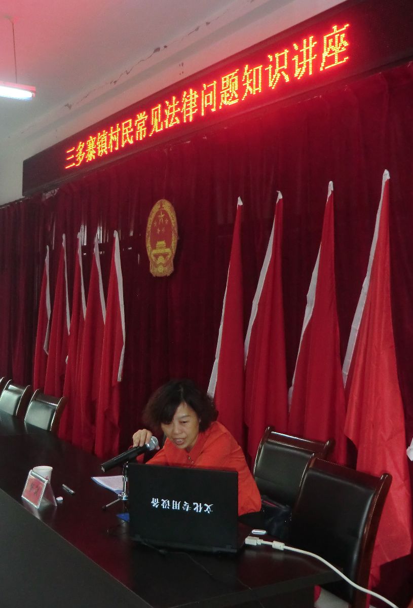 李岚律师以“村民常见法律问题”为题,就当前农村村民行使“村民自治”权力、农村土地流转、农村相邻权纠纷、老人赡养等问题,进行了法律知识宣传。李岚律师还详细讲解了《行政诉讼法》的关键点。